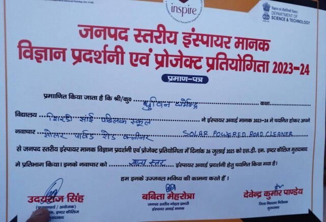Dhruvin Dharmendra, Young Scientist of SSPS-Project Solar Powered Road Cleaner, Selected for State level Inspire Award Exhibition. SSPS Admin2025-08-02T08:06:01+00:00